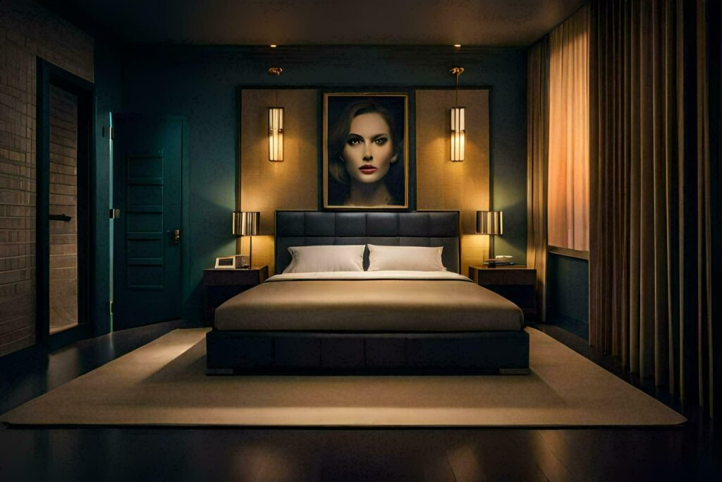 Een hotel chique slaapkamer combineert luxe, comfort en elegantie. Het ontwerp lijkt op de stijl van luxe hotels met verfijnde details en hoogwaardige materialen.